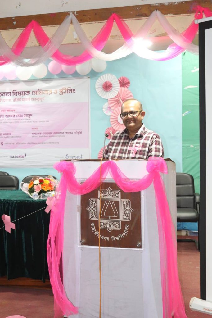 The Cancer Patient Support & Welfare Organization (CPSWO)—which works to provide financial, emotional, and social assistance to cancer patients, survivors, and their caregivers—recently organized a Breast Cancer Screening Awareness Program at Jahangirnagar University. CPSWO Founder and President Professor Zafor Md. Masud led an informative and interactive session with students, faculty, and staff. He discussed the early warning signs of breast cancer, the importance of self-examination, major risk factors, and the need for routine screening to ensure early detection.
